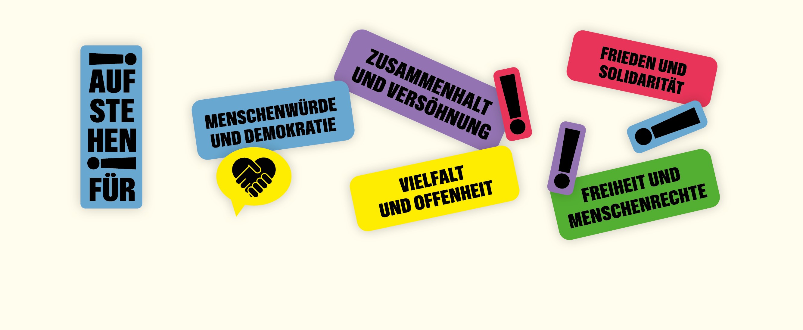 Aufstehen für Menschenwürde und Demokratie - und gegen politischen Extremismus - gerade mit Blick auf die Bundestagswahl am 23. Februar ist das heute wichtiger denn je. Wir haben darüber hinaus weitere Ziele entwickelt, für die es - aus unserem christlichen Menschenbild heraus - wichtig ist, sich einzusetzen. Wir stehen auf für: