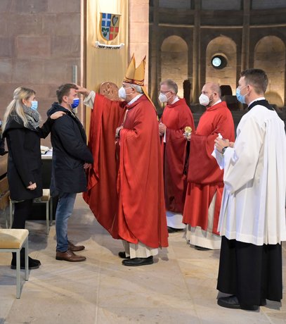 Speyer. Während eines feierlichen Gottesdienstes im Dom zu Speyer hat am Sonntag Bischof Karl Heinz Wiesemann 64 Frauen und Männern die Firmung gespendet. Während der Pate oder die Patin dem Firmling die Hand auf die Schulter gelegt hat, zeichnete der Bischof mit dem geweihten Chrisam-Öl ein Kreuz auf dessen Stirn und sagte: „Sei besiegelt durch die Gabe Gottes, den Heiligen Geist“. Die Firmung ist in besonderer Weise Gabe des Heiligen Geistes und macht den Firmling nach Taufe und Erstkommunion zum „Vollbürger im Reich Gottes“.