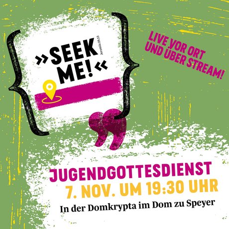 Laut Kaplan Matthias Schmitt, dem Leiter der Berufungspastoral Speyer, ist „Seekme!“ („Such mich!“) eine neue Art von Gottesdienst für junge Menschen. „Jugendliche sind auf der Suche nach ihrem Platz im Leben und vielleicht auch auf der Suche, was Gott mit ihrem Leben vorhat. ‚Seekme!‘ möchte bei dieser Suche helfen“, so beschreibt Schmitt den Gottesdienst. Einen besonderen Akzent wird auf den modernen Lobpreis an diesem Abend gelegt, einem Musik- und Gebetsstil, der immer mehr Zuspruch von Christen aus allen Konfessionen findet. Die musikalische Gestaltung übernimmt an diesem Abend die geistliche Gemeinschaft Jugend 2000. Die Domkrypta wird in ein Lichtermeer getaucht werden, um den ältesten Teil des Domes besonders hervorzuheben. Predigen wird Thomas Tussing von der Gemeinschaft Chara aus Gerbach.