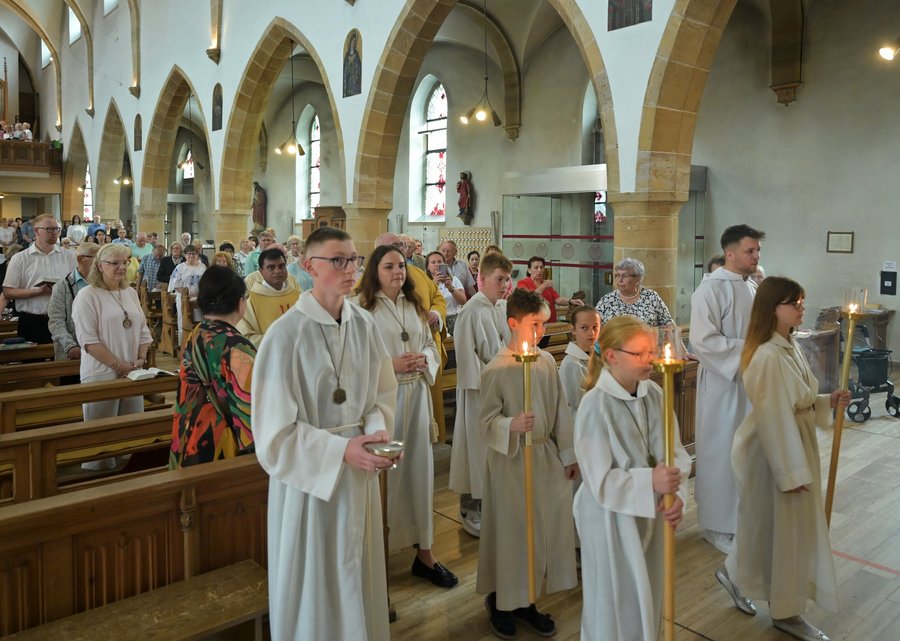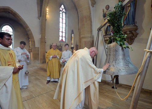 Germersheim. In einem Festgottesdienst in der Germersheimer St. Jakobus-Kirche ist am 15. Juni eine zusätzliche, fünfte Kirchenglocke in Dienst gestellt worden. Die Messe mit „Glockenweihe“ leitete der Speyerer Generalvikar Markus Magin gemeinsam mit Dekan Jörg Rubeck und Kaplan Bala Jujugiri.