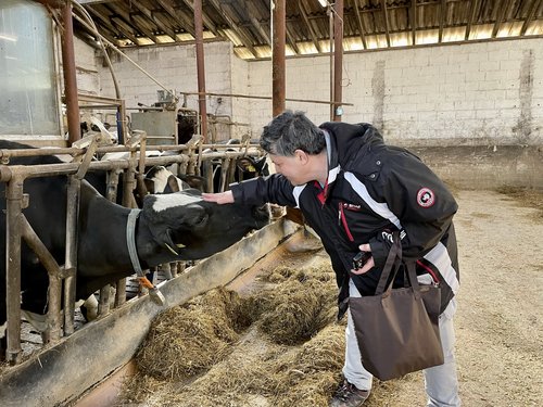 Beim Besuch des Bauernhofes geht es zuerst in Richtung des Kuhstalls. Die schwarz-weiß-gefleckten Tiere muhen laut, als die Bewohner des Landstuhler Hauses St. Elisabeth, einer Außenstelle des Caritas-Förderzentrums Paul Josef Nardini Zweibrücken, zusammen mit Bauernhof-Chef Karl-Heinz Guhl den Stall betreten. Dort steht auch Guhls Melkroboter. Besucher Murat Gökce ist davon ganz besonders begeistert: „Davon muss ich erst Mal ein Foto machen“, sagt er aufgeregt und zückt augenblicklich seinen Fotoapparat, die richtigen Erinnerungsfotos an den Besuch dürfen natürlich nicht fehlen. Nur wenige Meter vom Kuhstall entfernt sind die jungen Kälber untergebracht. Laut Guhl sind die Tiere erst wenige Tage alt, dementsprechend wackelig stehen sie auf ihren kleinen Hufen. Aber: Die Kälber sind alles andere als schüchtern. Als Gökce, Winzen und Grob zusammen mit Anika Heinz näher an die jungen Kälbchen herantreten, kommen diese zutraulich hergelaufen. „Menschen haben generell einen sehr guten Draht zu den Tieren“, sagt Heinz. Und natürlich: Die jungen Kälbchen sehen besonders putzig aus. Die drei Bewohner des Landstuhler Hauses St. Elisabeth sind ganz gerührt.