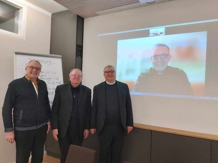Speyer. Am vergangenen Montag, den 6.3.2023, trafen sich Bischof Dr. Karl-Heinz Wiesemann, Weihbischof Otto Georgens, Pfarrer Volker Sehy und Theo Wieder zur Vorbereitung der fünften Synodalversammlung, die ab kommenden Donnerstag in Frankfurt tagen wird. Die vier Delegierten aus dem Bistum Speyer tauschten sich insbesondere über die zur Abstimmung vorliegenden Texte, sowie Hoffnungen und Befürchtungen aus. Im Vorfeld der letzten Vollversammlung des Synodalen Wegs waren Spannungen mit Rom deutlich geworden, die sich insbesondere auf den die Synodalversammlung fortschreibenden „Synodalen Rat“ beziehen. Ein Synodaler Ausschuss soll diesen Rat im Anschluss an die fünfte Synodalversammlung vorbereiten. Die Bedenken Roms - zuletzt durch Nuntius Nikola Eterović im Rahmen der Vollversammlung der Deutschen Bischofskonferenz in der vergangenen Woche deutlich herausgestellt – beziehen sich auf eine seitens Rom befürchtete Einschränkung des bischöflichen Amtes durch Bindung an ein synodales Gremium. Die Delegierten der Synodalversammlung aus dem Bistum Speyer diskutierten einerseits die kirchenrechtliche Einordnung, andererseits die schwierige und größtenteils auf Schriftverkehr reduzierte Kommunikationskultur mit dem Vatikan, die immer wieder zu Missverständnissen führe.