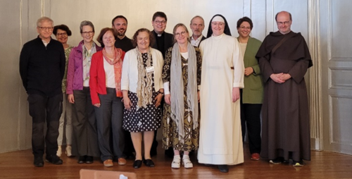 Foto: Vorstand und Beirat der Edith-Stein-Gesellschaft Deutschland e.V., 1 Reihe. (v. l. n. r): Alfred Körner, Prof. DDr. Mariéle Wulf, Dr. Cordula Haderlein, Dr. Beate Beckmann-Zöller, Dr. des. Pia Lilienstein, Sr. M. Karola Dróżdż OP, P. Felix M. Schandl O.Carm; 2. Reihe (v. l. n. r): Birgit Krystek, P. Dr. Lukasz Strzyz-Steinert OCD, Pfr. Dr. Tonke Dennebaum, Pfr. Norbert Marxer, Barbara Grom.
