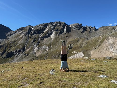Am letzten Tag steht ein Highlight auf dem Programm: der Aufstieg zum Gletschersee unterhalb des Großvenedigers. In der Nacht hat es bis runter auf 2300m geschneit und als wir am Morgen aufbrechen, liegt in den Schattenlagen noch Raufreif. Mit der Sonne am nahezu wolkenlosen Himmel steigen die Temperaturen schnell und bescheren uns einen traumhaften Bergtag. Nach einer halben Stunde haben wir uns warm gelaufen und halten an: die letzten Morgenrunde in der Gruppe. Für Jasmin machen diese Morgenrunden die KHG Hüttentour besonders: „Wenn wir einfach an einem super schönen Ort die Rucksäcke abgestellt haben und angefangen haben, zusammen zu singen, das hat total Spaß gemacht“, erinnert sich die „Mensch & Umwelt“-Studentin aus Landau.