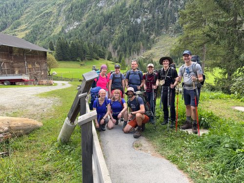 Der Aufstieg am ersten Tag aus dem Virgental hat es gleich in sich: vom Parkplatz in Ströden sind es rund 800 Höhenmeter hinauf zur Essener-Rostocker Hütte. Ein erster Test, ob die Schuhe gut passen und die Kondition stimmt. Die Anstrengung lohnt sich, denn schnell tauchen wir in die beeindruckende Berglandschaft Osttirols ein und folgen dem rauschenden Maurerbach – einem von zahllosen Gletscherbächen, die wir auf unserer Tour immer wieder überqueren und bestaunen. In den folgenden Tagen erleben wir viele beglückende Momente: der Blick auf die verschneiten Gipfel in der Morgensonne; Murmeltiere, die auf dem warmen Felsen „Wache halten“; der türkisblaue Eissee, in dem sich die Berge spiegeln (einige Unerschrockene nehmen sogar ein eisiges Bad); die letzten Edelweis des Bergsommers; die Stärkung am Abend in den gastfreundlichen Alpenhütten. Und immer wieder und allgegenwärtig das prägende Element: Wasser! „Gelobt seist du, mein Herr, für Schwester Wasser. Sehr nützlich ist sie und demütig und kostbar und keusch.“ Diese Strophe aus dem Sonnengesang des Heiligen Franziskus, den wir täglich gemeinsam beten, wird ganz anschaulich: In Gebirgsseen und in kleinen und großen Wasserfällen entlang unserer Route, gefroren im Gletschereis und als satter Tau auf den Gräsern am Morgen – und, da hatten wir Wetterglück, selten auch mal als Regen von oben.