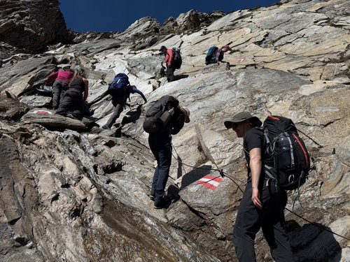 Auf der gemeinsamen Tour von Hütte zu Hütte machen die jungen Menschen Erfahrungen jenseits von Prüfungen und Seminaren. Für einige von ihnen war es das erste Mal, so lange und intensiv im Hochgebirge zu sein. Manches davon wirkt hinein in den Alltag der Studierenden und die Erinnerungen klingen nach – auch dann noch, wenn das Studium eines Tages abgeschlossen sein wird. Jonathan, der in Landau im Fach Psychologie promoviert, resümiert: “Beim Anblick der riesigen Bergwände fühle ich mich sehr klein und voller Demut. Wir überqueren nicht den Berg, sondern er lässt uns passieren. Rückblickend, bewegt mich diese Erfahrung zu tiefer Dankbarkeit für unsere Liebsten und Wertschätzung für die Dinge, die wir als selbstverständlich hinnehmen.“