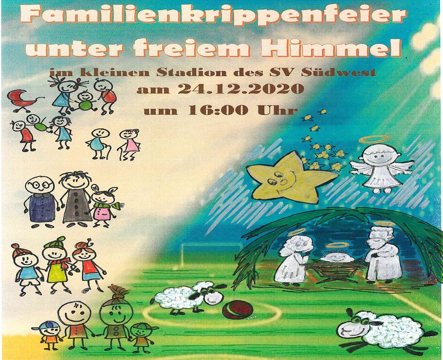 Die Idee zu einer gemeinsamen Familienkrippenfeier der Pfarrei Hll. Petrus und Paulus stammt von den Schwestern Veronika Löser und Dorothea Wieland. „Wir haben nach einer Möglichkeit gesucht, wie möglichst viele Familien in diesem Jahr trotz Corona an einer Krippenfeier teilnehmen können“, berichten sie. Der Ortsvorsteher von Ludwigshafen Mitte und Süd, Christoph Heller, war von der Krippenfeier unter freiem Himmel sofort begeistert und schlug das Stadion des SV Südwest als Standort vor.