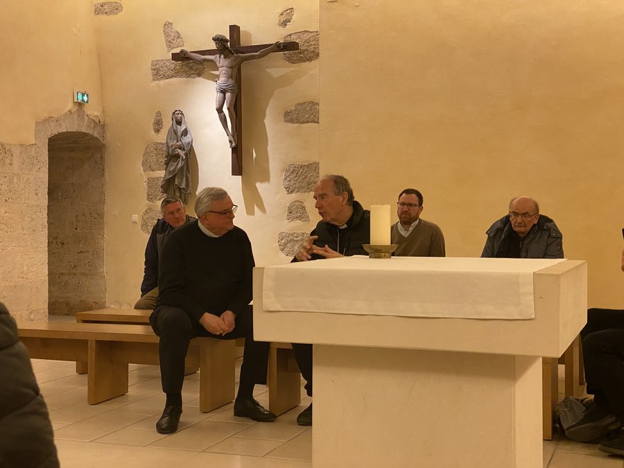 Wir durften eine dreieinhalbstündige Führung durch die Schatzkammer und die Kathedrale genießen, und haben viel über die Figuren am Süd- und Nordportal erfahren, über die Fenster, die die Theologie des 12. Jahrhunderts widerspiegeln. Nach dem Abendgebet und Abendessen erzählte Bischof Philippe über die pastorale Situation seiner Diözese. So gehöre die Kathedrale dem Staat, der für die Renovierung aufkomme, wobei die Betriebskosten das Bistum trage. Erstaunt hat, dass die Stadt Chartres keinen Euro Zuschuss für die Kathedrale gewährt, obwohl sie das Wahrzeichen der Stadt sei und jährlich circa anderthalb Millionen Besucher anziehe. Ohne die Kathedrale, deren Türme man in bis zu 30 km Entfernung sehe, wäre die überregionale Bedeutung der Stadt nicht gegeben. Es gäbe überraschend viele erwachsene Taufbewerber, die vom christlichen Glauben gehört haben und sich bewusst für ein Leben mit Gott entschieden hätten. Bischof Dr. Wiesemann übersetzte in beide Richtungen, sodass wir auch unsere Fragen stellen konnten.