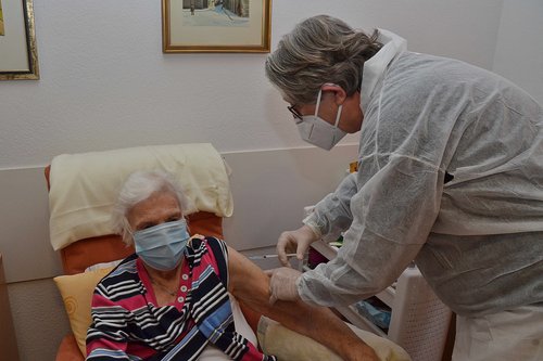 Natürlich wurden alle Impfwilligen von den agierenden Ärzten noch einmal über Wirkung und mögliche Nebenwirkungen aufgeklärt. Sie erfuhren, dass der Oberarm an der Einstichstelle leicht schmerzen und sich bis zum Folgetag eine körperliche Müdigkeit einstellen könnte. Dann ging’s los mit dem eigentlichen Impfen - in einem im Untergeschoss eingerichteten Impfbereich sowie in den privaten Zimmern der Bewohner. Ein junger Mitarbeiter, der aus der Nachtschicht kam, sowie die 91-jährige Marianne Mayr, die mit gutem Beispiel vorangehen und etwas für die Gesellschaft tun will, gehörten zu den ersten Kandidaten, denen nicht nur die 154 gemeldeten, sondern auch noch 14 spontan Entschlossene folgten. Die fast 100-prozentige Impfbereitschaft der Senioren sei wenig verwunderlich, die über 70-prozentige Impfbereitschaft der Mitarbeiter des Hauses aber ein beeindruckender Wert, der über dem allgemeinen Durchschnitt liege, freuen sich die Verantwortlichen der Caritas. Sie alle hatten übrigens Glück, dass die Impfung tatsächlich am angekündigten Tag stattfinden konnte. Für andere Altenheime, so bedauern Vinzenz du Bellier und Timo Kittler, musste die bereits terminierte und aufwändig vorbereitete Aktion vom DRK sehr kurzfristig abgesagt werden, weil die komplizierte Verteilung des Impfstoffes nicht gewährleistet war.
