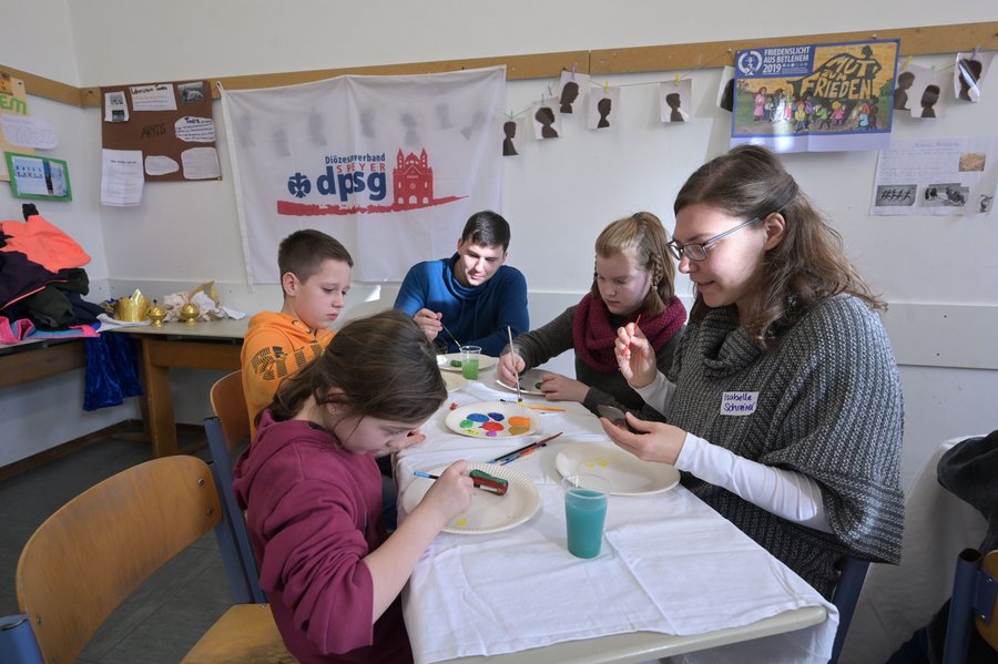 Der Tag mündete in einen Friedens-Gottesdienst mit Weihbischof Otto Georgens im Speyerer Dom. Weihbischof Georgens sagte: „Ihr bringt nicht nur Gottes Segen. Ihr seid auch Friedensbringerinnen und Friedensbringer. Danke dafür!“ Ihre Bitten für eine friedliche Welt notierten die Kinder auf Zettel, die in ein Friedensnetz eingebunden wurden. Mit großer Konzentration beteten sie gemeinsam das Vater Unser in Gebärdensprache.