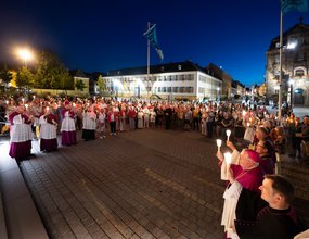 Abschluss der Lichterprozession zu Mariä Himmelfahrt vor dem Dom © Domkapitel Speyer, Foto: Klaus Landry