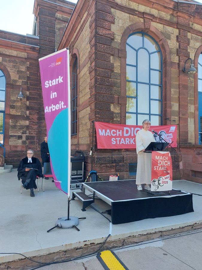 Kaiserslautern. Die Maikundgebung, zu der der DGB Rheinland-Pfalz/Saarland an die Kammgarn in Kaiserslautern eingeladen hatte, endete mit einer schockierenden Nachricht. Ein Edeka-Markt in Kaiserslautern schloss vor wenigen Tagen ohne Vorwarnung der Belegschaft. Davon berichtete eine Mitarbeitern. Zuvor hatten die Hauptrednerin Kathrin Gröning, Vorsitzende der Bildungsgewerkschaft GEW Rheinland-Pfalz, zu den zahlreichen Besuchern zum Motto „Mach dich stark mit uns“ gesprochen. Begonnen hatte der Tag mit einem ökumenischen Gottesdienst, den Pfarrer Gerd Kiefer, Leiter der Evangelische Arbeitsstelle Bildung und Gesellschaft, Kaiserslautern, und Regina Wilhelm, Referentin im Fachbereich Arbeitswelt im Bistum Speyer, mit den Anwesenden feierten.
