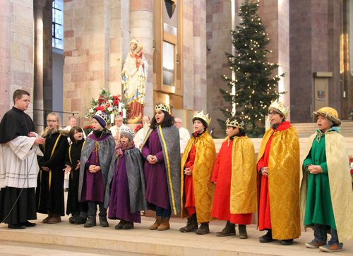 Speyer. Zum Fest Erscheinung des Herrn feierte Bischof Dr. Karl-Heinz Wiesemann im Speyerer Dom ein Pontifikalamt, an dem auch zahlreiche Mitarbeiterinnen und Mitarbeiter des Bischöflichen Ordinariats und des Diözesancaritasverbandes ebenso wie mehrere Sternsinger der Dompfarrei teilnahmen. Bischof Wiesemann dankte ihnen stellvertretend für alle Sternsinger im Bistum für ihren unermüdlichen Einsatz: „Ihr kleinen und doch so großen Könige leistet einen großen und wichtigen Dienst. Indem ihr von Haus zu Haus geht und den Menschen den Segen bringt, gebt Ihr ein Beispiel, wie es in der Welt anders werden kann.“ Er würdigte die Sternsingeraktion als „großartiges Zeugnis“ einer Hilfsaktion von Kindern für Kinder.