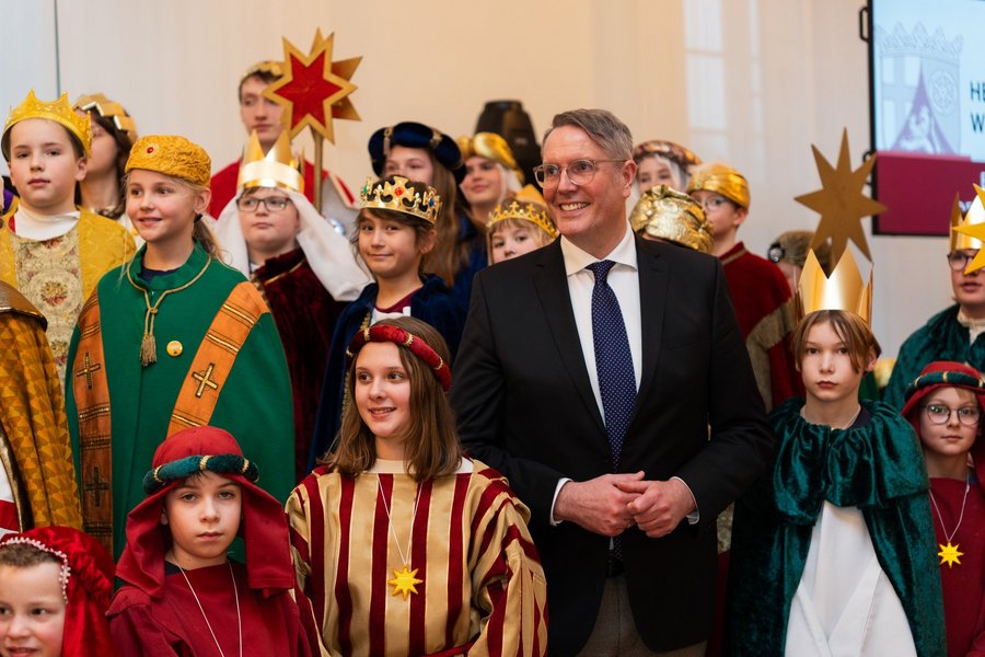Begegnung von Ministerpräsident Alexander Schweitzer mit Sternsingern und Sternsingerinnen in der rheinland-pfälzischen Staatskanzlei