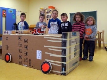 Und so sieht es in der Praxis aus: In der Kita St. Dreifaltigkeit wird über zwei Projektwochen hinweg das Thema „Feuerwehr“ behandelt. Der vierjährige Jaden zählt konzentriert die Kreise, die auf einer Styroporplatte vorgemalt sind: Drei sind es, fehlt noch ein vierter. Denn ein Feuerwehrauto hat vier Räder. Jaden gehört zur Bärengruppe, und die bastelt ein riesiges Feuerwehrauto – mit Leiter, Löschwasser, Fenster und Sirene, zählen die Kinder begeistert auf. In anderen Gruppen entstehen andere Bastelarbeiten, es wird viel gesprochen, gesungen, Bilderbücher betrachtet und Geschichten erzählt.
