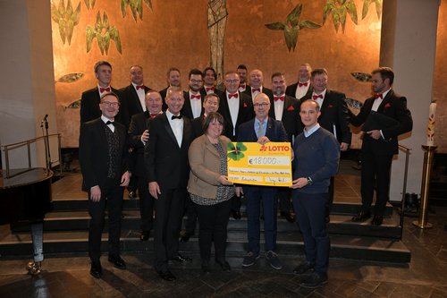 Zum Ende des Konzertabends überreicht Manfred Hommen von Lotto Rheinland-Pfalz dem Förderverein Hospiz und Palliativ einen Spendenscheck über 18.000 Euro, die einen wertvollen Beitrag zur Unterstützung von Menschen in palliativer und hospizlicher Betreuung leisten werden.