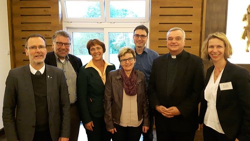 Bistumsvertreter, Referentin und Religionslehrervereinigung-Vorstand (v.l.): DD Dr. Christoph Kohl, Alexander Haas, Prof. Dr. Sabine Demel, Gudrun Laux, Klaus Ziegler, Bischof Dr. Karl-Heinz Wiesemann und Dr. Irina Kreusch