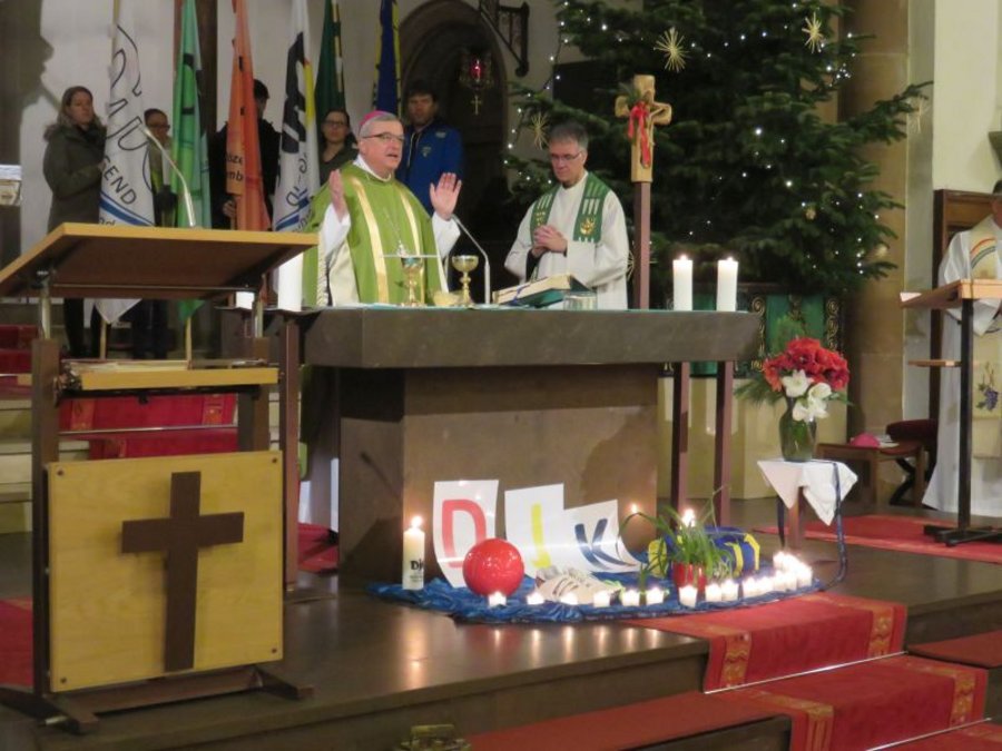 Weiterer Höhepunkt war am Samstagabend der Festgottesdienst in der Stadtkirche St. Michael mit dem Speyrer Bischof Dr. Karl-Heinz Wiesemann, den Pfarrer Kühn herzlich im Namen der DJK begrüßte eben-so wie den Trierer Weihbischof Jörg Michael Peters. Delegierte und Gäste füllten die Kirche. In seiner dynamischen Predigt wies Bischof Wiesemann auf die enge Verbindung von Leib und Seele hin anhand vieler Beispiele aus der Heiligen Schrift. Er erinnerte an das gerade gefeierte Weihnachtsfest: Gott wird Mensch! Dadurch sei etwas in Bewegung geraten: Glauben bewegt und bleibt in Bewegung. Jesus selbst war als Wanderprediger unterwegs und bewegte die Menschen, die sich ihm zuwandten. Wiesemann erinnerte an Prälat Carl Mosterts, den Gründer der DJK 1920 in Würzburg, der die Verbindung von Spiritualität und Körpererfahrung erkannte und die Freude an der Bewegung betonte. „Jede und jeder von uns, von euch ist ein Tempel des Heiligen Geistes – verherrlicht also Gott in eurem Leib!“ so Wiesemann.