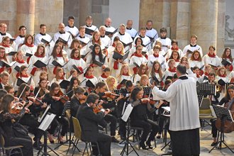Voll besetzt war die Kathedrale an diesem Morgen bei dem Gottesdienst, der musikalisch vom Domchor- und Domorchester gestaltet war. Domkapellmeister Markus Melchiori hatte Mozarts „Krönungsmesse“ ausgewählt. Das Domorchester ergänzte in beachtenswerter Harmonie, so dass die Messe ihre Wirkung in voller Pracht erzielte. Domorganist Markus Eichenlaub begleitete das Pontifikalamt auf der Orgel. Zu Beginn des Pontifikalamtes wurden zwölf Sängerinnen des Mädchenchors nach drei Jahren im B-Chor in den A-Chor aufgenommen. Am Nachmittag lud Bischof Wiesemann zur Pontifikalvesper ein, die von der Schola Cantorum Saliensis gestaltet wurde.