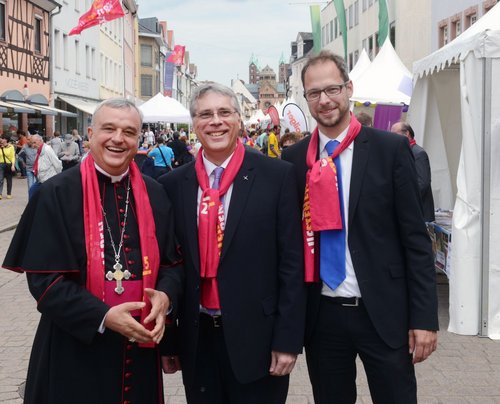 Bischof Karl-Heinz Wiesemann, Kirchenpräsident Christian Schad und ACK-Vorsitzender Jochen Wagner (von links) beim Ökumenischen Kirchentag 2015.