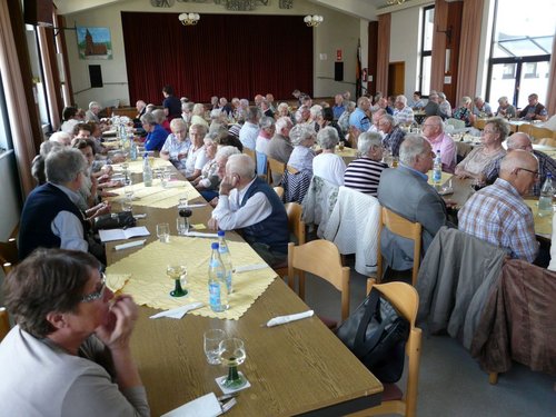 Nach dem Gottesdienst setzte sich das Programm im Thomas-Morus-Haus fort: Die Seniorinnen und Senioren wurden von der Seniorenbeauftragten des Diözesanverbandes, Gisela Schroth (Dirmstein), und vom Vorsitzenden der Kolpingsfamilie Homburg-Zentral, Werner Frank, begrüßt. Anschließend sprach die Beigeordnete der Stadt Homburg, Christine Becker, ein Grußwort. Für die Gemeinde St. Andreas hieß P. Tobias Kraus die Gäste herzlich willkommen.