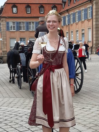 Weinprinzessin Marlen I. drückte ihre Freude darüber aus, dass sie zum dritten Mal bei der Übergabe dabei sein durfte und stellte den Wein vor: Der Grauburgunder schmeichele Nase und Gaumen. Der an Birnen und Honig erinnernde Duft werde im Geschmack „durch seine vollmundig elegante Art in Verbindung mit seinem ‚Burgunderschmelz‘ geprägt“.