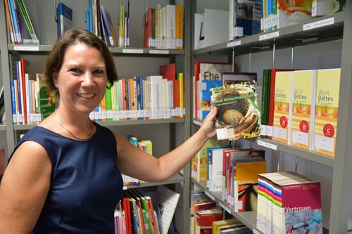 Über ein Jahr haben die Vorbereitungen gedauert. Pünktlich zum Schuljahresbeginn ist die Medienstelle jetzt eröffnet worden. In den hellen, frisch renovierten Räumen im Untergeschoss des Ludwigshafener Heinrich-Pesch-Haus stehen über 8000 Medien bereit, auf die Erzieher, Religionslehrer und Gemeindemitarbeiter zugreifen können. Die Bandbreite reicht vom Bibel-Memory über Bilderbücher bis hin zur Fachliteratur und DVDs für den Religionsunterricht. Auch Erzählfiguren, Legematerialien und fertig ausgearbeitete Unterrichtsmaterialien für den Religionsunterricht stehen bereit. „Wir haben hier in Ludwigshafen speziell die Kategorie Katechese, die explizit als Unterstützung für die Arbeit in der Gemeinde gedacht ist“, sagte die Leiterin der Medienstelle, Stefanie Holländer.