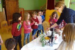 Kleine Künstler malen Bilder zum Thema "Abendmahl"