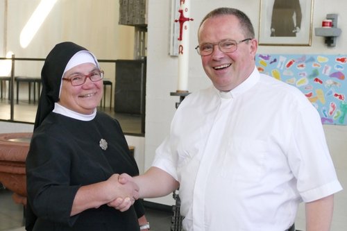 Schwester Ramona, die sich auch in der Pfarrei Offenbach St. Josef in vielem eingebracht hat und einbringt, wird von Herzen gedankt. Sie bleibt der Pfarrgemeinde als ehrenamtliche Helferin erhalten, denn sie wird bei den Schwestern in Queichheim wohnen und in der Pfarrei St. Laurentius Herxheim präsent bleiben.