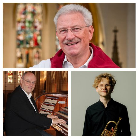 Klaus Mertens (oben), Horst Christill (unten links) und Johannes Leiner (unten rechts) spielen gemeinsam in der Landauer Marienkirche © Pfarrei Mariä Himmelfahrt Landau, Oskar Schlechter