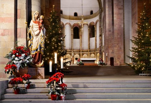 Am Ersten Weihnachtstag feiert Bischof Wiesemann um 10 Uhr ein Pontifikalamt, das musikalisch von Mädchenchor, Domsingknaben, Domchor, Capella Spirensis und den Dombläsern gestaltet wird.