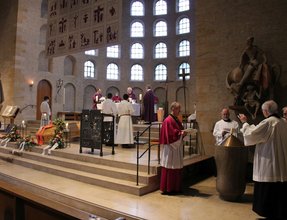 Musikalische gestaltet wurde das Requiem von der Schola der Dommusik unter Leitung des zweiten Domorganisten Christoph Keggenhoff sowie Domorganist Markus Eichenlaub an der Orgel der Friedenskirche St. Bernhard.