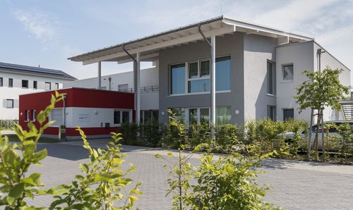 Der Neubau hat eine schöne Außenanlage, die bei dem schönen Wetter mitgenutzt werden kann. Besucher dürfen derzeit aber keine mehr kommen.