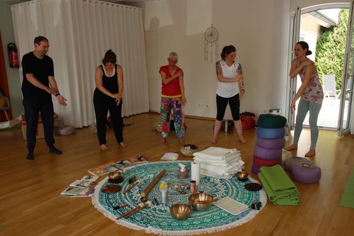 Viel Spaß hat den Teilnehmern der dritte Workshop-Tag gemacht. Denn nun kamen Klangschalen, Shantis und Zimbeln, aber auch der Klang der eigenen Stimme zum Einsatz. Die Gruppe begab sich auf eine Fantasiereise, erlebte Klangentspannung und Klangschalenmassage.