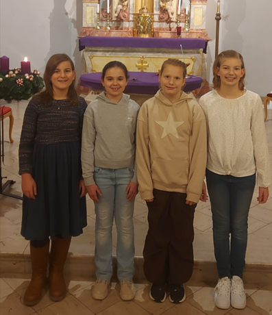 Die vier Sternsinger aus Ludwigshafen Amelie Brandl, Isabella Czaban, Greta Wendel und Nela Gutermann (v.l.n.r.)
