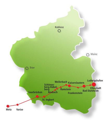 Am 10. November führt der Weg über Weilerbach (Emissionsfreie Gemeinde) und die US-Air Base nach Ramstein. Über Schönenberg-Kübelberg geht es am 11. November nach Bexbach. Hier gibt es am Abend ein Podiumsgespräch zum Thema Kohlekraft. Ziel am folgenden Tag ist Saarbrücken. Am 13. November passieren die Pilger die Grenze nach Frankreich und erreichen über St. Avold schließlich Varize. Am 14. November treffen die Pilger in Metz ein, wo sich die Südroute mit dem Pilgerweg aus dem Norden Deutschlands vereint. Auf der Internetseite zur Aktion ist der Streckenplan abgebildet und eine Anmeldung zum Mitpilgern möglich.