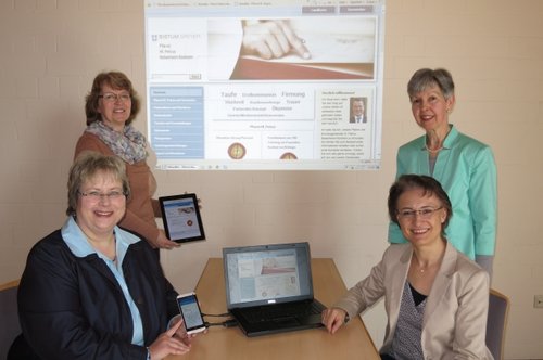Gelungene „Webpremiere“: Das Redaktionsteam der Pfarrei „Heiliger Petrus Bobenheim-Roxheim“ (im Bild von links: Annette Hesch, Martina Ulrich, Eva Bodensohn Gemeindereferentin Barbara Sedlmeier, stehend) bei der Freischaltung des neuen Internetauftritts.