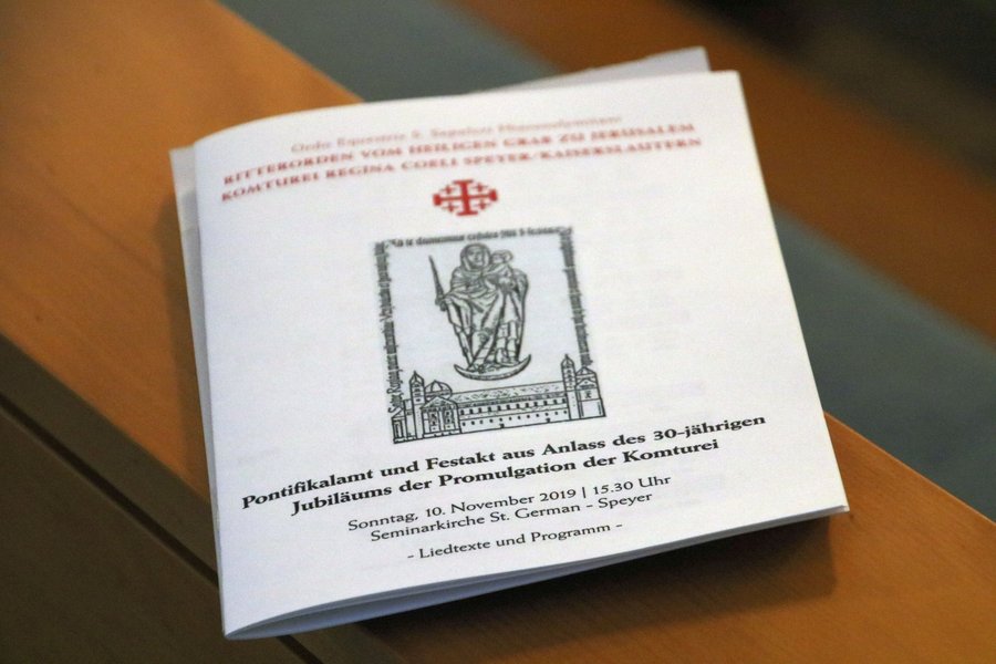 Speyer. In der Diözese Speyer gibt es seit dem 1. Oktober 1989 eine eigenständige Komturei des Ritterordens vom Heiligen Grab zu Jerusalem. Dieses Jubiläum der Komturei Regina Coeli Speyer-Kaiserslautern wurde am 10. November von den Mitgliedern des Ritterordens gefeiert. Gut 120 Teilnehmer, Ordensmitglieder und Gäste, folgten der Einladung zum Gottesdienst und Festakt in das Priesterseminar St. German.