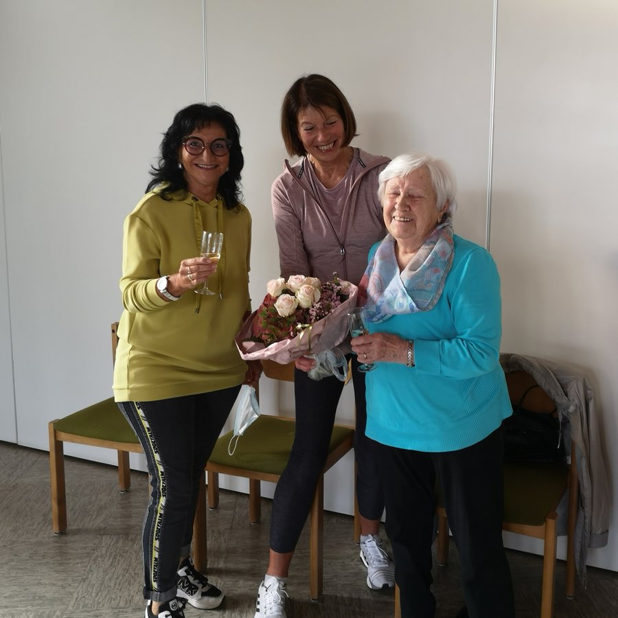 Frau Roller, die älteste Kursteilnehmerin der Familienbildungsstätte besucht seit Eröffnung der Familienbildungsstätte vor mehr als vierzig Jahren die Gesundheitskurse und beteuerte, dass diese Kurse, die Übungen und vor allem das Erleben der Gemeinschaft maßgeblich zu ihrer Fitness beigetragen haben. Auch ihre Familie motiviert sie zu Kursteilnahmen, so dass zeitweise vier Generationen der Familie Roller parallel Kurse der Familienbildungsstätte besuchen. Sie wird auch noch weiterhin der Gymnastik treu bleiben, doch manche Übungen nun als Stuhl- und Sitzgymnastik ausführen.