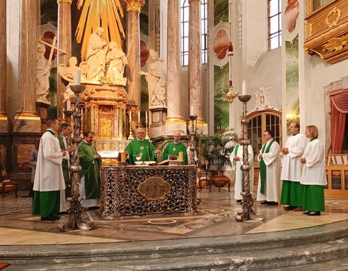 Ludwigshafen. Vor 50 Jahren ist das Heinrich Pesch Haus von Mannheim über den Rhein nach Ludwigshafen gezogen. Das haben Mitarbeiter:innen und Wegbegleiter:innen am Sonntag, 15. September 2024, mit einem Festgottesdienst mit Bischof Dr. Karl-Heinz Wiesemann und Pater Provinzial Thomas Hollweck SJ in der Mannheimer Jesuitenkirche gefeiert.