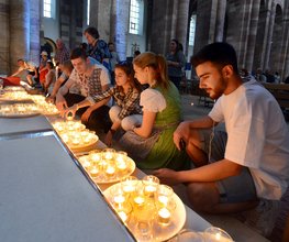 Speyer. Am Abend des Brezelfest-Samstag war zum vierten Mal „Nightfever“ im Dom. Während die Menschen im Dirndl oder Lederhosen zünftig gekleidet von oder zum Festplatz wanderten, wies eine lange Reihe von Teelichtern über den Domplatz und durch die Vorhalle und den Mittelgang den Weg zum ausgesetzten Allerheiligsten auf dem Altar. Dass die Nightfever-Abende gern bei bei solch öffentlichen Festen stattfinden, liegt nach Aussage des Veranstalters daran, dass man möglichst viele Menschen ansprechen will.