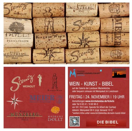 Eine Teilnahme ist auch per Livestream möglich: Wer die Weine für daheim bestellen und Wein - Kunst - Bibel in den eigenen vier Wänden im Livestream mitfeiern will, muss sich sputen: Nur noch bis 15. November können Bestellungen entgegen genommen werden, damit die Weinpakete auch rechtzeitig zuhause ankommen.