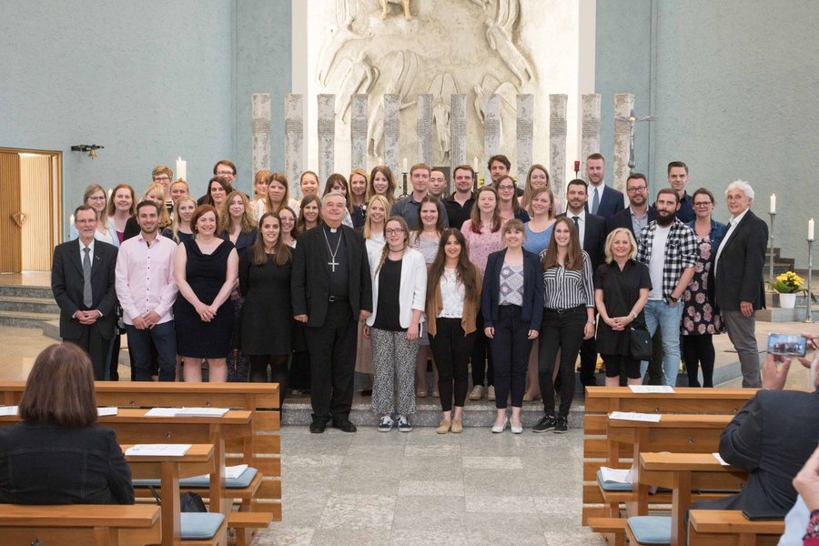 Speyer. Wer das Fach katholische Religion unterrichten will, benötigt die offizielle Beauftragung des Bischofs, denn die Lehrkräfte lehren im Auftrag der Kirche. Diese offizielle kirchliche Aussendung – die Missio canonica – haben 39 Frauen und Männer am Freitag in einem Gottesdienst in der Kirche des Priesterseminars in Speyer aus den Händen von Bischof Dr. Karl-Heinz Wiesemann erhalten.