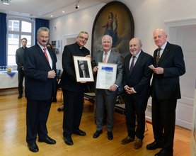 Karl-Markus Ritter (Geschäftsführung Europäische Stiftung Kaiserdom), Bischof Dr. Karl-Heinz Wiesemann, Dr. Dr. h.c. Manfred Fuchs, Werner Schineller (ehem. OB der Stadt Speyer), Dr. Georg Gölter (stellvertretender Vorsitzender der Stiftung) v.l.n.r.