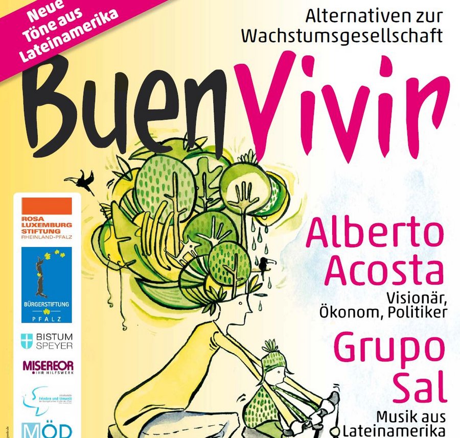 Der ehemalige ecuadorianische Minister und Wirtschaftswissenschaftler Acosta, einer der führenden Intellektuellen Lateinamerikas, wirbt seit vielen Jahren für Alternativen zur Wachstumsgesellschaft. Sein Konzept heißt „Buen Vivir“ – Gutes Leben. Es beinhaltet eine „Entmarktung der Natur“, wirbt für ein Leben im Einklang mit der Schöpfung und eine neue Ethik der Entwicklung. Acosta stellt an dem Abend seine Ideen für ein solidarisches und soziales Wirtschaftssystem vor. Die damit verbundene Veränderung im Lebens- und Politikstil sieht er als Lösungsansatz für die großen globalen Krisen. Die Band „Grupo Sal“ präsentiert dazu „neue Töne aus Lateinamerika“.