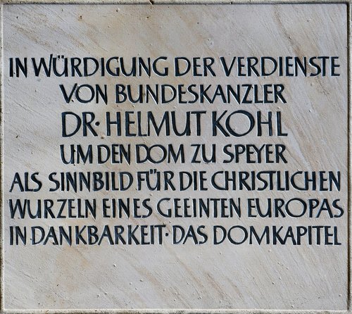 Musikalisch wurde die Feierstunde durch den Domorganisten Markus Eichenlaub begleitet. Im Anschluss an die Reden der Bischöfe und das Orgelspiel wurde in der Vorhalle des Doms eine Gedenkplatte enthüllt. Auf ihr ist zu lesen: In Würdigung der Verdienste von Bundeskanzler Dr. Helmut Kohl um den Dom zu Speyer als Sinnbild für die christlichen Wurzeln eines geeinten Europas. In Dankbarkeit Das Domkapitel.