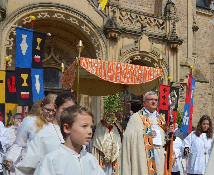 Fronleichnamsprozession: Bischof Wiesemann ruft zu Solidarität auf / Rund 1000 Gläubige begleiten den Weg