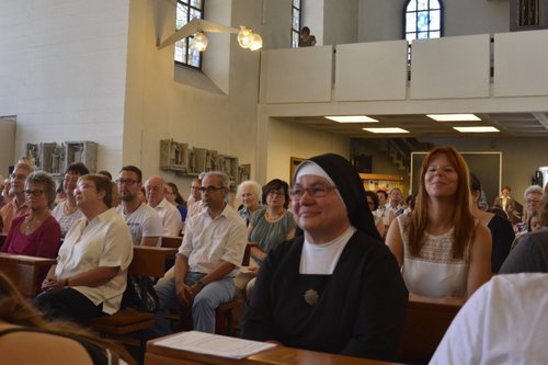 Die Abschiedsfeier wurde mit einem Gottesdienst unter dem Motto „Das Leben ist bunt wie der Regenbogen“ – in der voll besetzten St. Josefs-Kirche eröffnet. Ausgehend vom Sonntagevangelium, wo es um den barmherzigen Samariter ging“ predigte Pfarrer Arno Vogt über Nächstenliebe. Jeder solle versuchen sein Ego zurückzustellen und sich fragen: „Was kann ich für meinen Nächsten tun?“. Jeder der hilfesuchend ist, ist mein Nächster. Man könne sich an Schwester Ramona ein Beispiel nehmen.