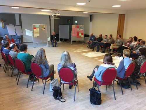 Um die Aufmerksamkeit auf das Thema Pfarreiwahl zu lenken, entwickelten die Workshop-Teilnehmer unter anderem die Idee eines visualisierten Count-Downs. Der Werbung in den sozialen Netzwerken wurde ebenso Bedeutung zugeschrieben wie einer persönlichen Präsenz zum Beispiel bei Stadt- oder Weinfesten. Zur Kandidatengewinnung entstand unter anderem die Idee, zu einem „Kandidatenfest“ einzuladen, bei dem sich „alte Hasen“ und Interessierte über die aktuellen Projekte der Pfarrei austauschen können. Eine „Wahl-Wanderung“ wurde als Chance gesehen, potentielle Kandidaten im wörtlichen Sinne mit auf den Weg zu nehmen. Um kurz vor der Wahl die Gläubigen zu mobilisieren, zogen die Teilnehmer zum Beispiel eine Aktion mit einer überdimensionalen Wahlbox in der Fußgängerzone, einen Flug mit einem Werbebanner über die Pfalz oder die Verknüpfung der Wahl zum Beispiel mit einer Ausstellung oder einem Kaffee- und Kuchenangebot in Betracht. „Mit diesem Fundus an neuen Ideen kann ich die Pfarreiwahl nun voller Motivation angehen“, zog eine Teilnehmerin am Ende der Veranstaltung Bilanz.
