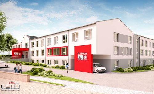 Wenn die ersten Bewohner einziehen, erwartet sie ein modernes Haus, das von Architekt Florian Feth aus Landstuhl geplant wurde. Das Caritas-Altenzentrum St. Nikolaus bietet stationäre Altenpflege sowie auch Plätze für Kurzzeitpflege, Verhinderungspflege und Tagespflege an. Insgesamt bietet das Haus 84 Einzelzimmer. Die Bewohner leben in kleinen Wohngruppen mit je zwölf Personen. Große Gemeinschaftsräume laden zum Miteinander und zur Teilhabe ein.